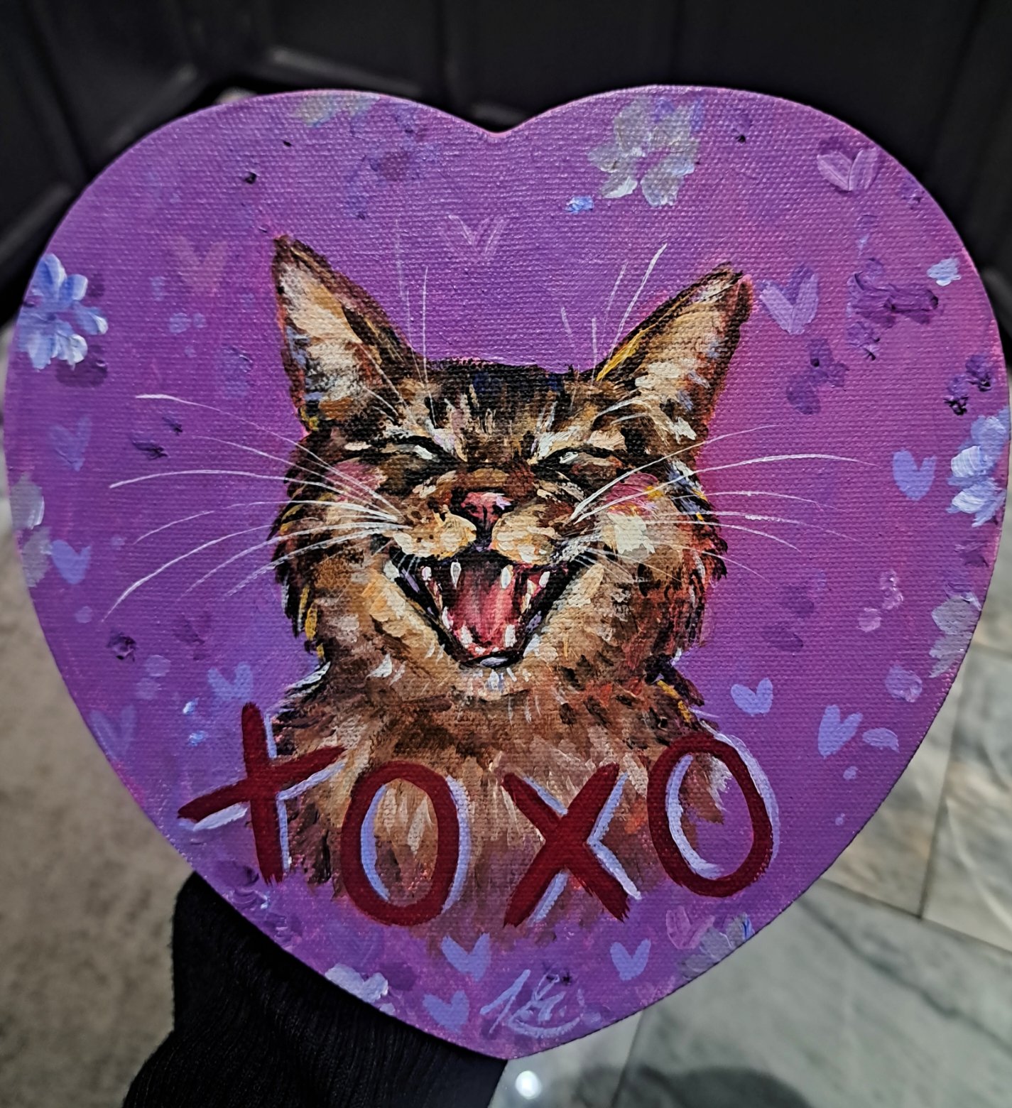 This is an original painting on a heart shaped canvas, it is 8x8 inches in size, and is done in acrylic paint. It is sealed with a gloss fixative.